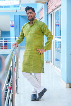 Green Solid Cotton Kurta Pajama Set For Men